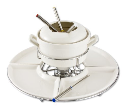- Includes stand, burner, fondue pot, 4 plates, and 4 food spears
